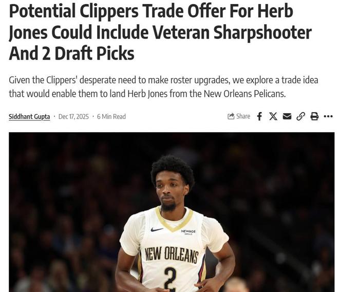 拒售三巨头,陷入绝境的快船队被曝仍想一搏!美媒送给快船3换1交易方案,通过这笔方案快船卖首轮抢湖人心上人赫伯特琼斯。