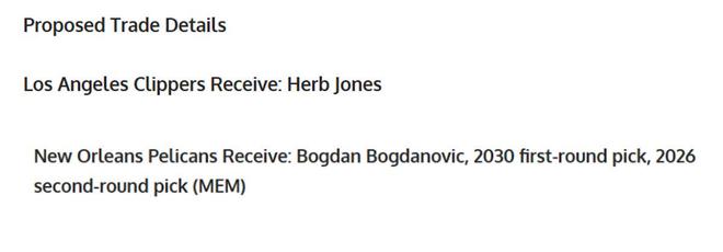 鹈鹕得到:博格丹+2030年快船首轮签+2026年灰熊二轮签。